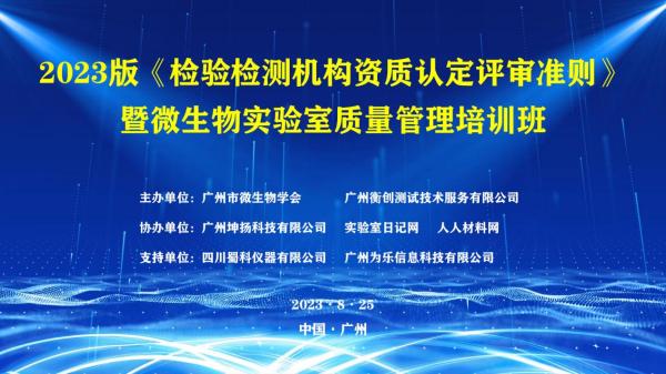 2023年8月25日,廣州市微生物學會、廣州衡創測試技術服務有限公司在廣州黃埔鈞恒廣場聯合舉辦了2023版《檢驗檢測機構資質認定評審準則》暨微生物實驗室質量管理培訓班。